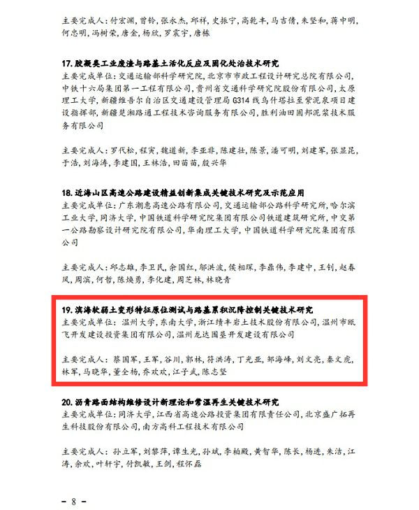 ÔÚ×îÐÂÐû²¼µÄ¡¶Öйú¹«Â·Ñ§»á¹ØÓÚÐû²¼¡°2019Äê¶ÈÖйú¹«Â·Ñ§»á¿ÆÑ§ÊÖÒÕ½±¡±»ñ½±ÏîÄ¿µÄ֪ͨ¡·ÖУ¬¶¶È¦¼¯ÍżÓÈëµÄ¡¶±õº£ÈíÈõÍÁ±äÐÎÌØÕ÷ԭλ²âÊÔÓë·»ùÀÛ»ý³Á½µ¿ØÖÆÒªº¦ÊÖÒÕÑо¿ ¡·´ÓÌìϸ÷µØ551¸öÉ걨ÏîÄ¿ÖÐÍÑÓ±¶ø³ö£¬Ï²»ñÒ»µÈ½±¡£