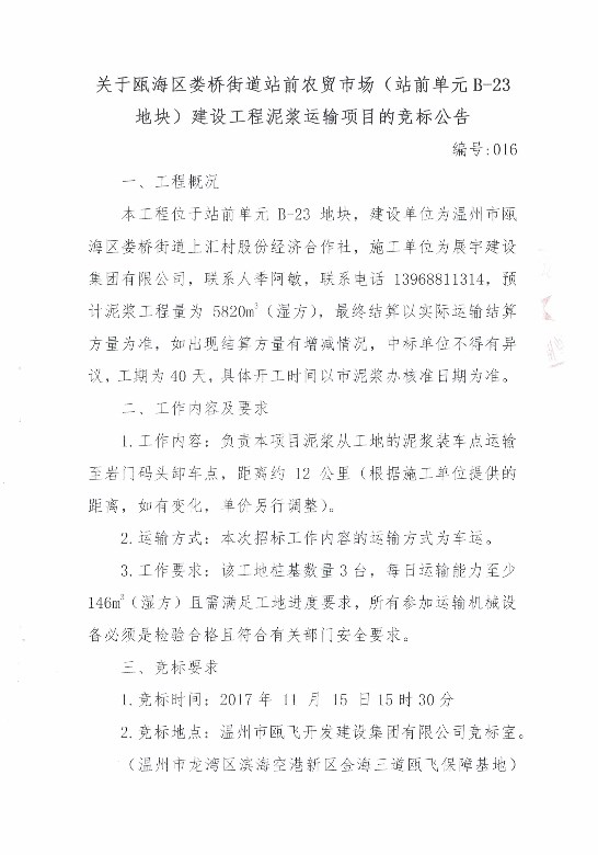 ¹ØÓÚ걺£ÇøÂ¦ÇŽֵÀվǰũóÊг¡£¨Õ¾Ç°µ¥Î»B-23µØ¿é£©½¨É蹤³ÌÄཬÔËÊäÏîÄ¿µÄ¾º±êͨ¸æ