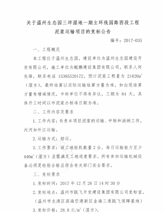 ¹ØÓÚÎÂÖÝÉú̬԰Èýˆ”ʪµØÒ»ÆÚÖ÷»·Ïß԰·Î÷¶Î¹¤³ÌÄཬÔËÊäÏîÄ¿µÄ¾º±êͨ¸æ