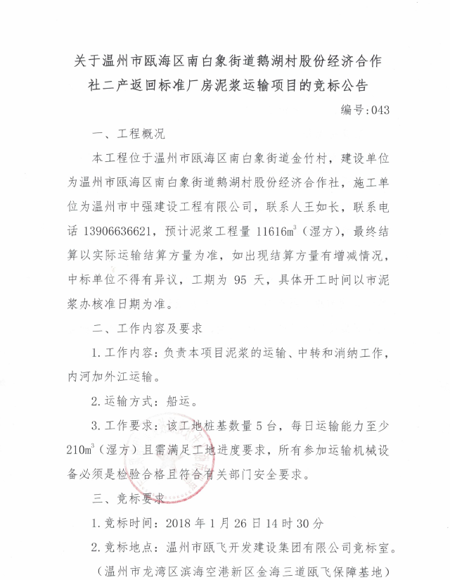 ¹ØÓÚÎÂÖÝÊÐ걺£ÇøÄϰ×Ïó½ÖµÀ¶ìºþ´å¹É·Ý¾¼ÃÏàÖúÉç¶þ²ú·µ»Ø±ê×¼³§·¿ÄཬÔËÊäÏîÄ¿µÄ¾º±êͨ¸æ