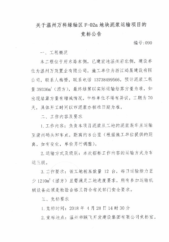 ¹ØÓÚÎÂÖÝÍò¿ÆÂÌÖáÇøF-02aµØ¿éÄཬÔËÊäÏîÄ¿µÄ¾º±êÏîÄ¿