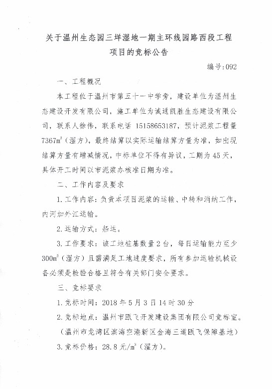 ¹ØÓÚÎÂÖÝÖÐÑëÂÌÖáÇøG-22µØ¿é¹¤³Ì×®¹¤³ÌÄཬÔËÊäÏîÄ¿µÄ¾º±êÏîÄ¿