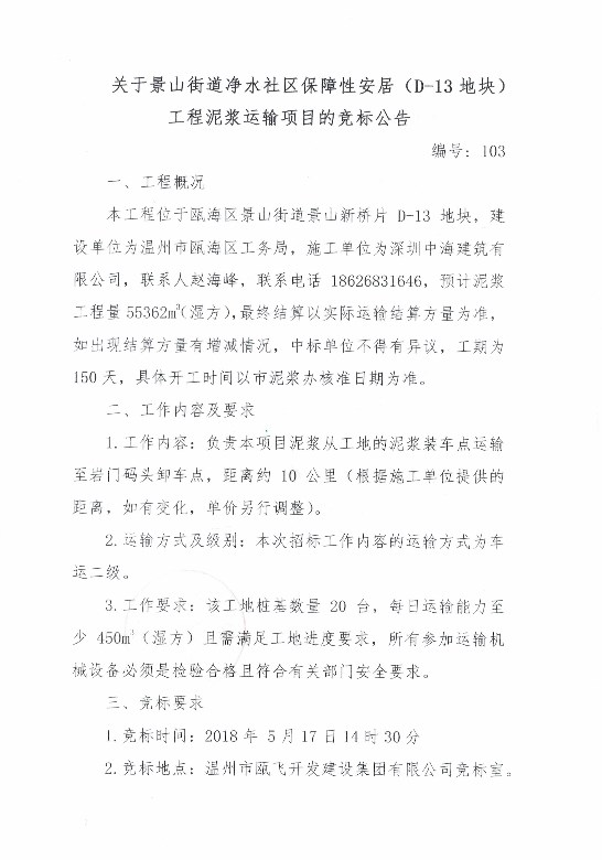 ¹ØÓÚ¾°É½½ÖµÀÇåË®ÉçÇø°ü¹ÜÐÔ°²¾Ó£¨D-13µØ¿é£©¹¤³ÌÄཬÔËÊäÏîÄ¿µÄ¾º±êͨ¸æ