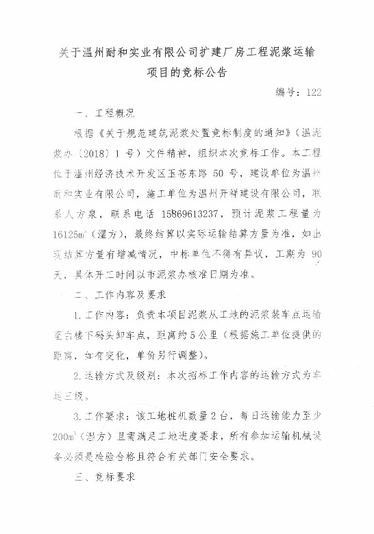 ¹ØÓÚÎÂÖÝÄͺÍʵҵÓÐÏÞ¹«Ë¾À©½¨³§·¿¹¤³ÌÄཬÔËÊäÏîÄ¿µÄ¾º±êͨ¸æ
