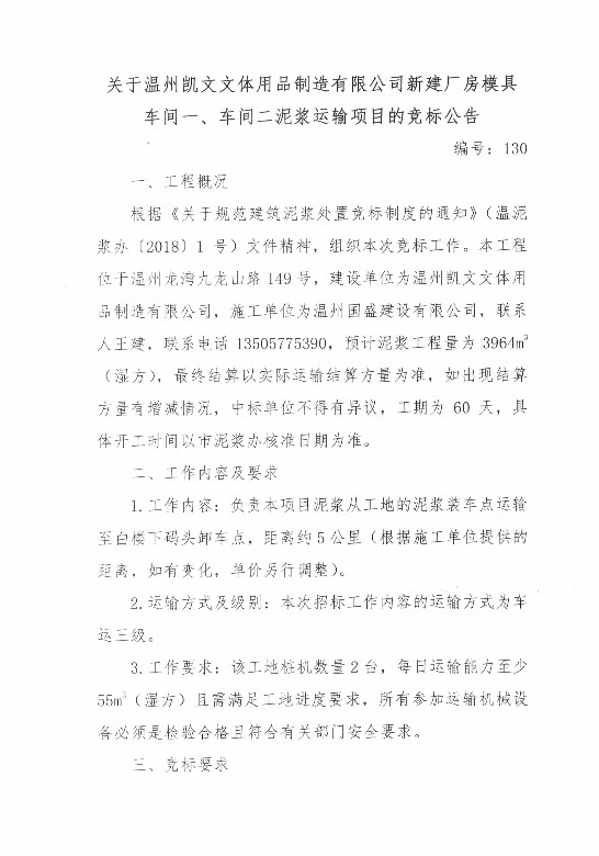 ¹ØÓÚÎÂÖÝ¿ÎÄÎÄÌåÓÃÆ·ÖÆÔìÓÐÏÞ¹«Ë¾Ð½¨³§·¿Ä£¾ß³µ¼äÒ»¡¢³µ¼ä¶þÄཬÔËÊäÏîÄ¿µÄ¾º±êͨ¸æ